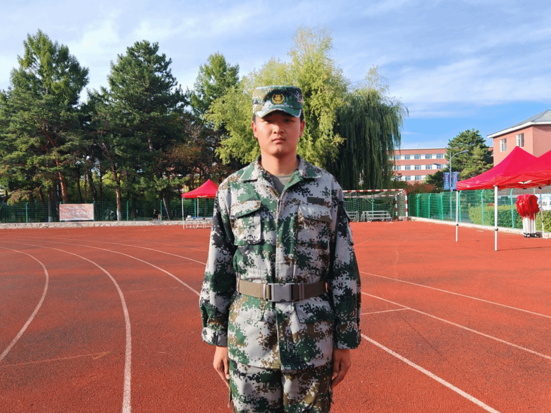 在军训训练中,闫天杨始终以高标准要求自己,把 “站好每一分钟军姿、走好每一步队列” 刻进日常。九月烈日下,训练场地表温度攀升,汗水顺着他的额角滑落,浸湿迷彩服衣领,他依旧保持下颌微收、双肩后张的标准姿势,双手紧贴裤缝纹丝不动 —— 教官曾在全连前称赞:“闫天杨的军姿稳、眼神专,是大家的示范!” 遇上阴雨天,雨水打湿训练鞋,跑道湿滑难行,他仍努力挺直腰杆,齐步走时精准把控 75 厘米步幅,摆臂高度严格对齐肩膀。正步训练中,为攻克 “踢腿定住易晃” 的难题,他利用午休留在操场加练,绑着轻便沙袋增强腿部力量,膝盖处的迷彩裤渐渐磨出浅痕,最终练出稳定有力的正步动作,成为连队队列训练的标杆。