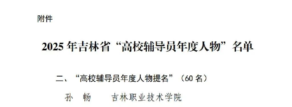 喜报丨bv伟德辅导员孙畅获评2025年吉林省“高校辅导员年度人物”提名奖