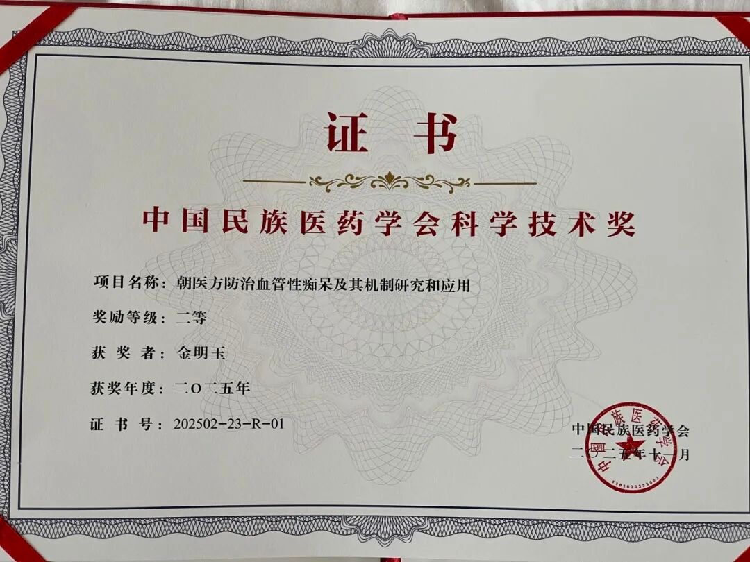 喜报丨bv伟德荣获中国民族医药学会科技进步奖二等奖 朝医方为血管性痴呆防治提供新路径