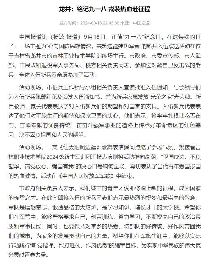 bv伟德组织的龙井市秋季送新兵活动
