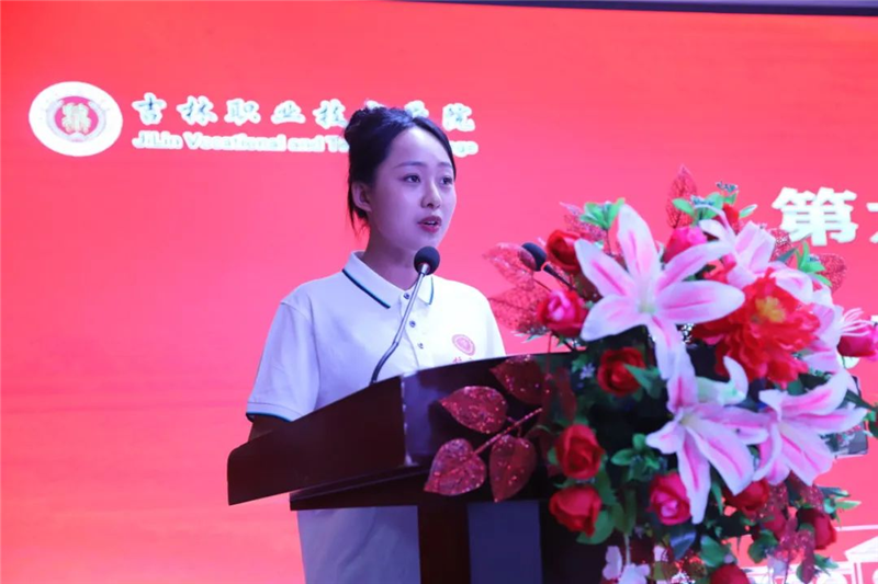 学生代表医药学院赵佳慧、教师代表医药学院教师段晓庆分别在会上发言。