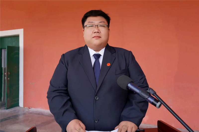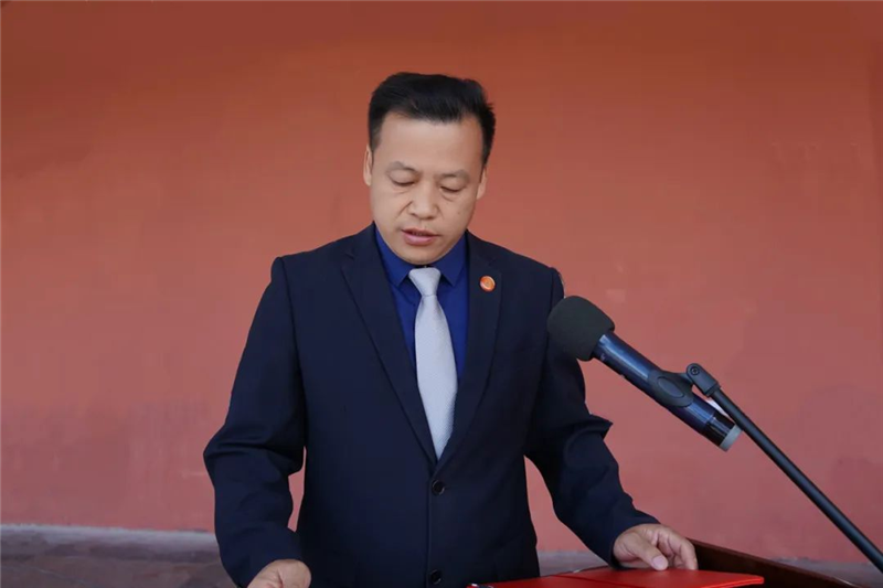 李贵河宣读成立军训团的决定。执行校长向军训团团长尹成龙授旗。