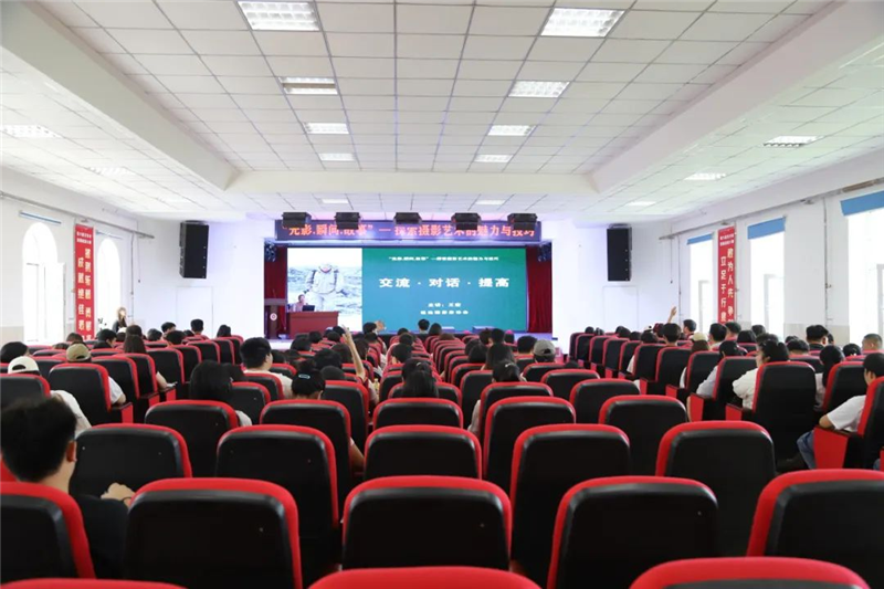 讲座由校团委贾硕主持。她介绍了王宏的简历,摄影家王宏作品曾入选第28届全国摄影艺术展览。吉林省第23届摄影艺术展览金奖获得者。延边第20届摄影艺术展览金、银、铜等9个奖项获得者。