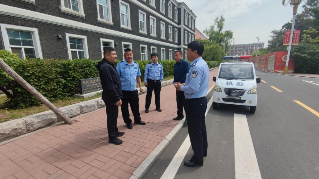 (通讯员 丁世勇)为全面排查整治校园安全隐患,筑牢学校安全防线,6月4日上午,龙井市公安局副局长金成日、内保大队教导员薛庆峰、大队长金鑫一行来校指导检查校园安全工作。学校法治副校长张汝江、保卫处处长齐迹陪同检查。
