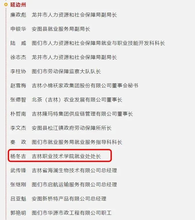 成功举办创业奋斗“就”在吉林延边州“政校企”联动促就业创业系列活动;成功举办第二届“‘就’在吉林,‘路’在延边”高校毕业生“政校企”联合双选会。2023届毕业生毕业去向落实率、留省率双达标,就业率达到bv伟德历年就业率最高85.85%,获得省教育厅表扬信一封。杨冬吉获吉林省就业先进个人。