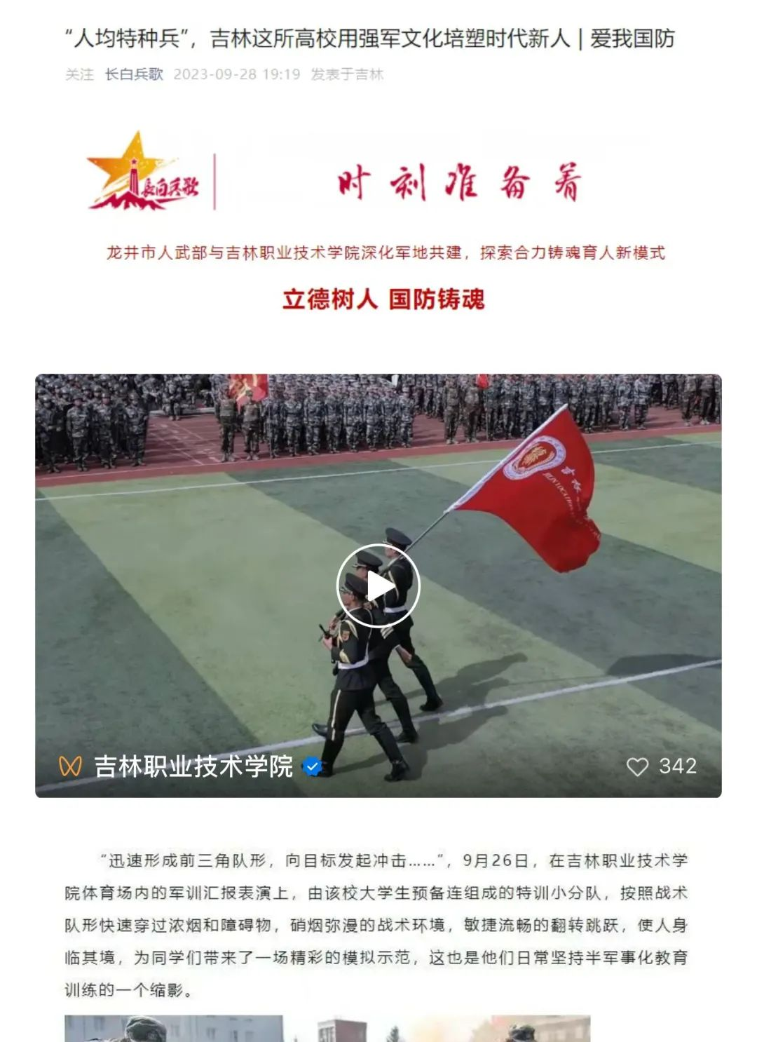 与新华社、人民日报、吉林日报、百度、学习强国、腾讯新闻、中宏网、长白兵歌等多家媒体建立友好联系,7家媒体转载学校新闻23余条,吉林教育转发学校短视频19条,被省教育厅宣传处推送国外媒体转发2条。大学生记者团成立。