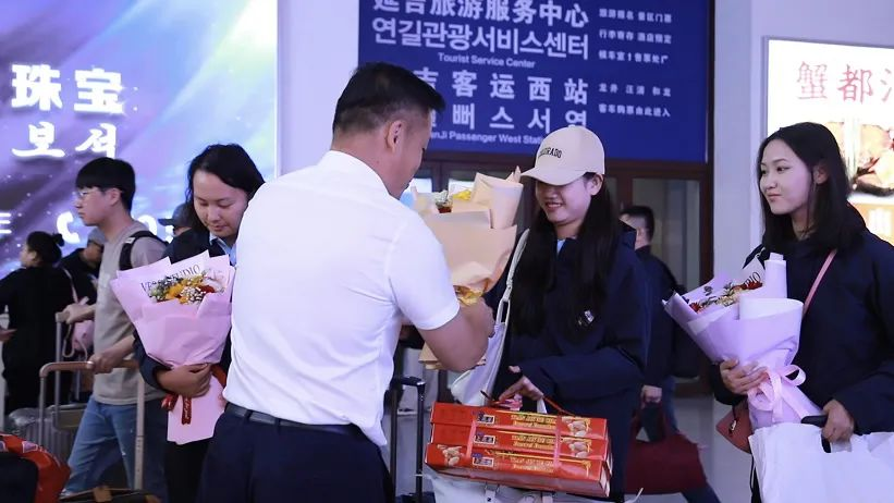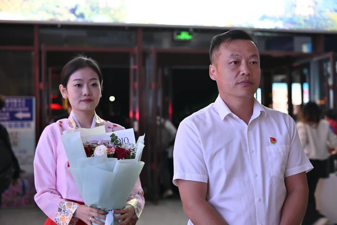 学校纪委书记、学工处处长李贵河代表学校领导班子前往延吉西站迎接归来的选手。李贵河向参赛选手表示热烈的欢迎和祝贺,并高度评价他们在比赛中所展现出来的精湛技艺和团队合作精神。