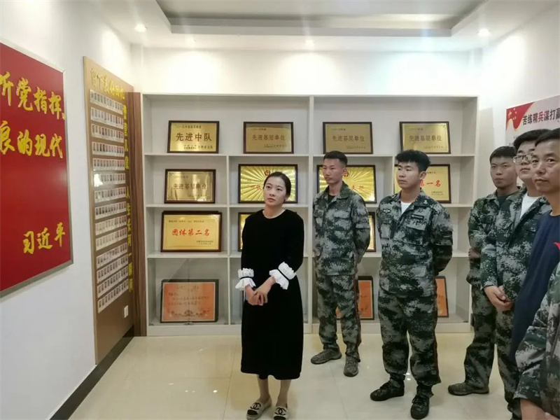 为贯彻落实习近平总书记关于“推动国防和军队现代化建设、提高青年学生国防意识和综合素质提供有力支撑”的重要指示精神,6月16日,bv伟德医药学院组织21级、22级学生代表走进武警中队。在武警中队中队长的陪同下,学校党委宣传部部长段世娇、医药学院党总支副书记尹成龙及全体辅导员一行参观了荣誉室、日常训练区。