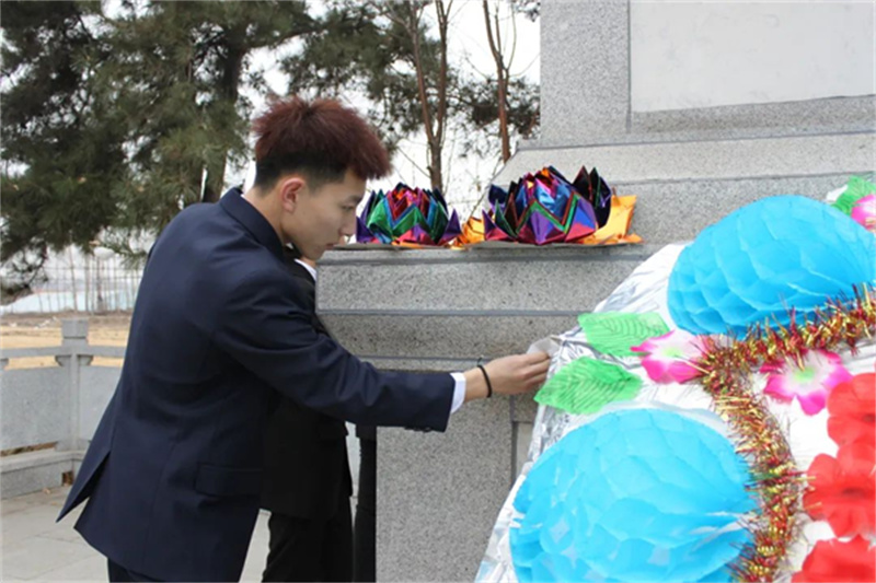 在沉重而庄严的气氛中,全体师生向革命烈士纪念碑整齐肃立,向革命先烈敬献花圈、集体默哀,深切表达了对革命烈士的缅怀与敬仰之情。