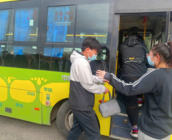 为了让学生安全、有序、高效完成洗浴,各学院党总支制定了详细方案,以楼层为单位对出行学生进行编组编号安排好车辆,由辅导员亲自带队,亲自带回。截至晚17时,所有外出学生经专门核酸检测通道返回宿舍。