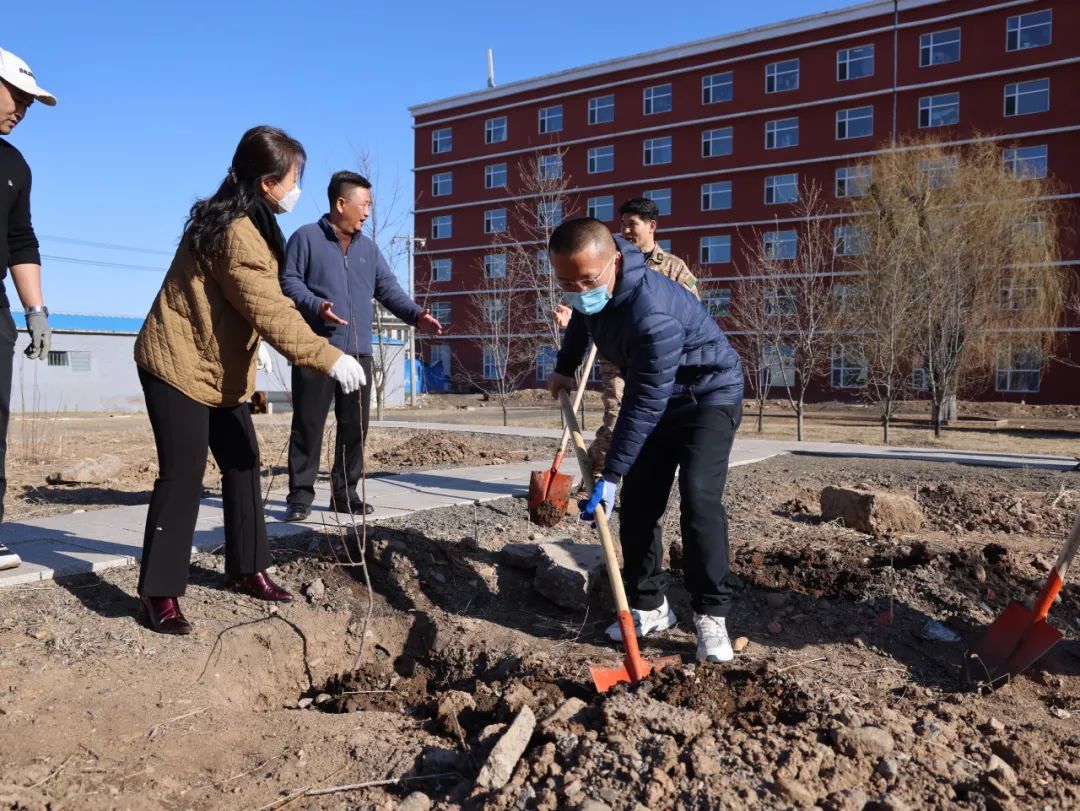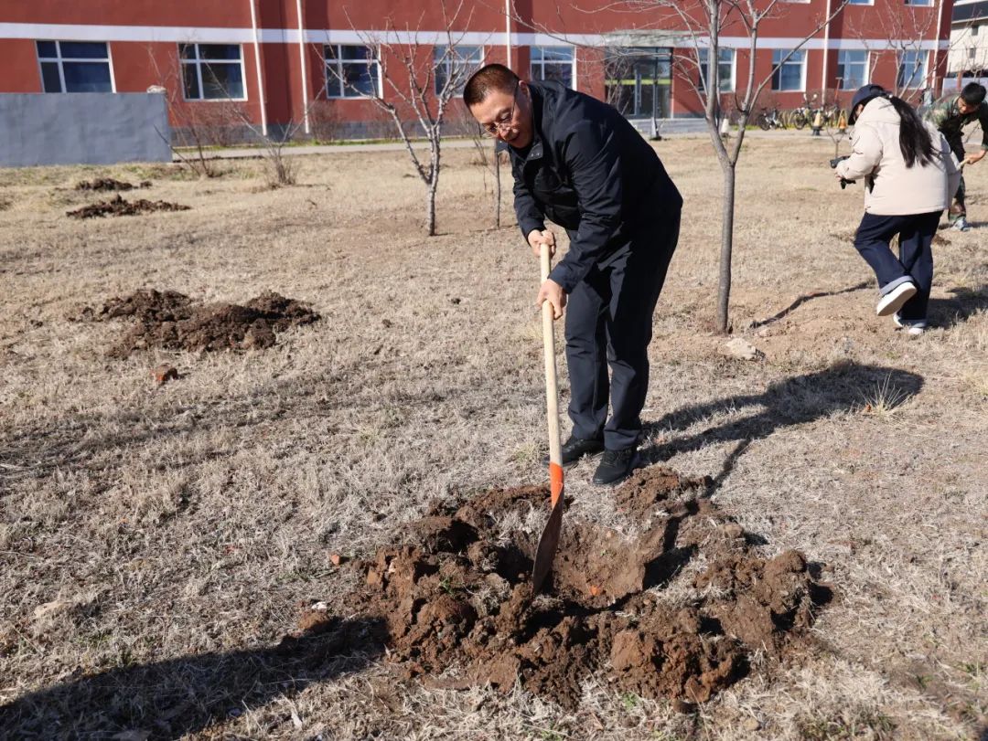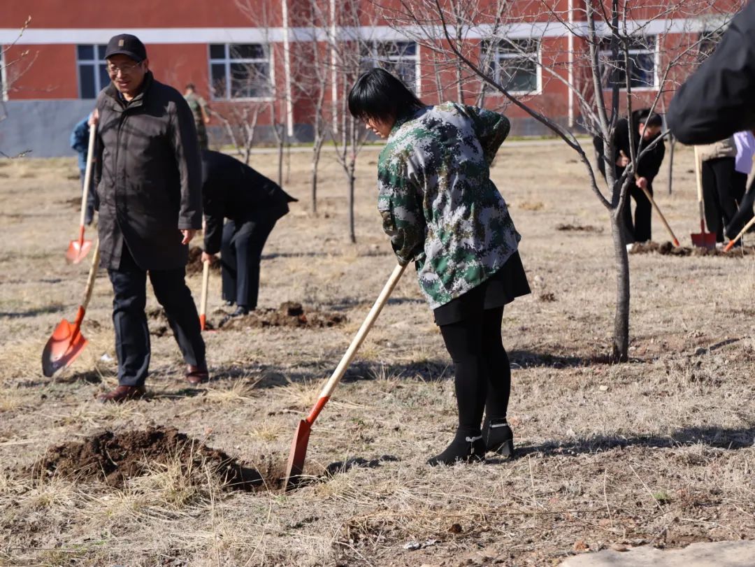 活动当天,暖阳倾洒,微风轻拂,为植树营造了绝佳氛围。步入植树区域,一幅热火朝天的劳动景象映入眼帘。全体教师迅速行动起来,按照预先规划,自发分成多个小组,各小组分工明确,井然有序地推进植树进程。有的教师紧握铁锹,奋力挖掘树坑,一锹一锹的泥土被翻起,那专注的神情,仿佛在为新生命精心打造温暖的 “家”;有的教师小心翼翼地搬运树苗,步伐稳健,他们深知手中承载的是绿色的希望。
