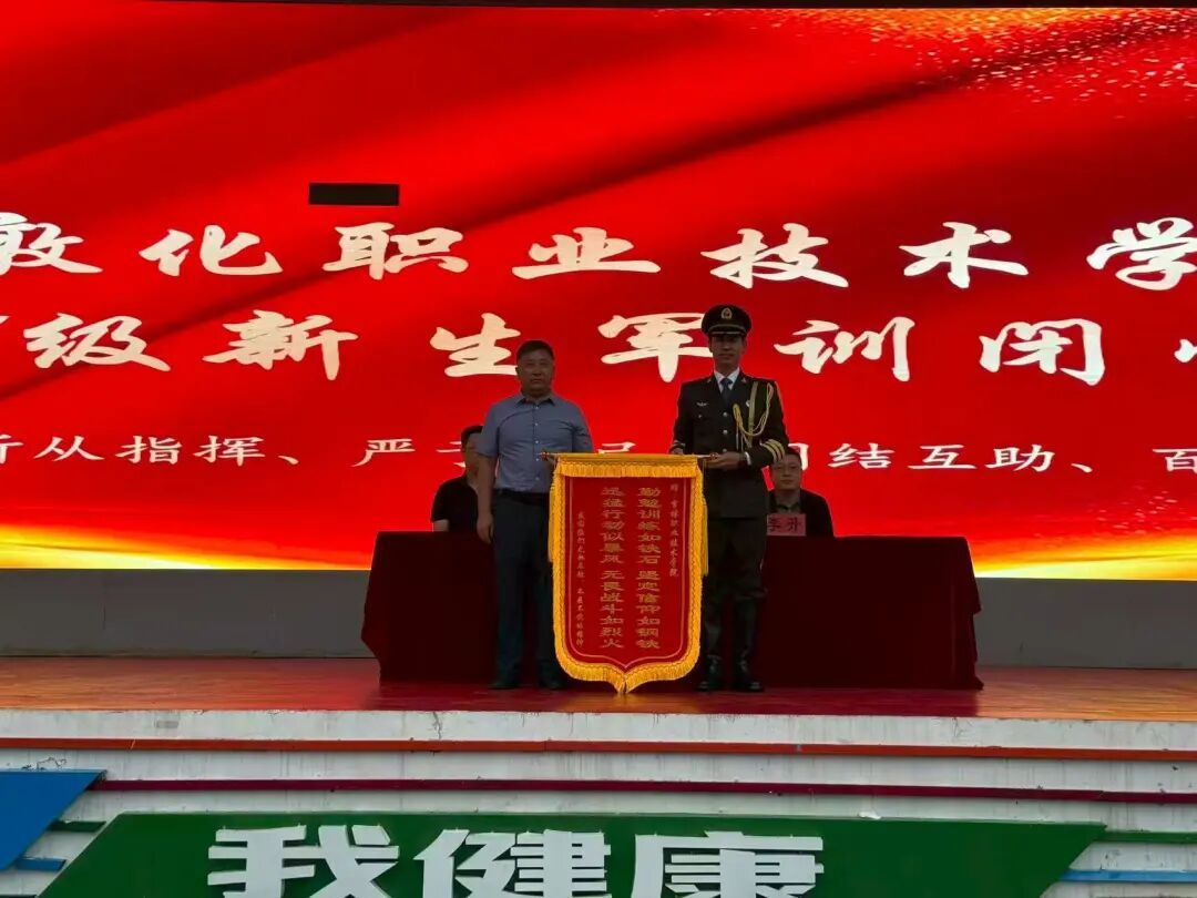 开营仪式上,敦化职业技术学院院长杨德国向军训团授旗,并作动员讲话:一要主动参训,迎难而上,刻苦训练,自觉养成优良作风,提高军事素养;二要令行禁止,服从命令,统一步调,一切行动听指挥,达成军训应有的效果;三要确保安全,充分准备,高质量地完成此次军训任务。军训教官代表和学员代表分别作表态发言,军训教官组织全体学员进行了军训宣誓。