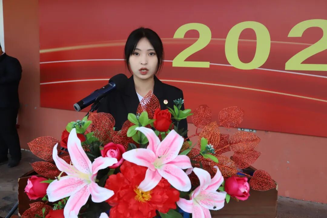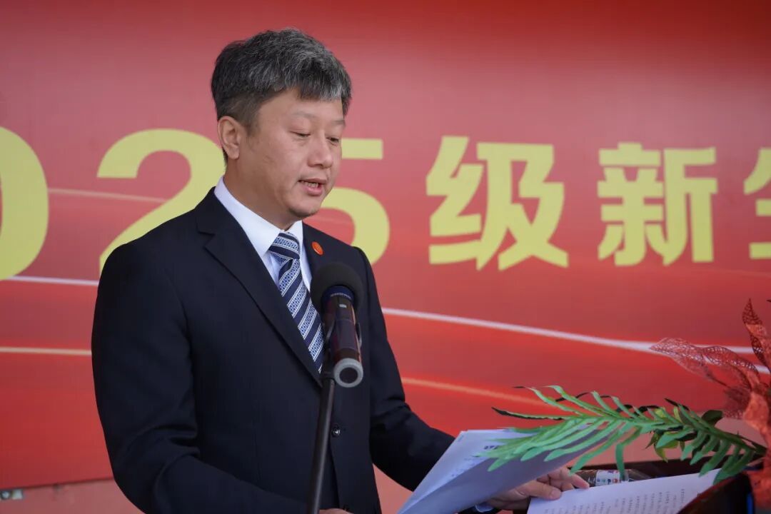 李可心在致辞中代表全校师生员工,向2352名2025级新生表示热烈欢迎,向圆满完成军训任务的新生、辛勤付出的教官与老师们致以敬意。李可心回顾了学校在产教融合、技能竞赛、思政教育、师资建设等方面的成果——作为第47届世界技能大赛中国集训基地,学校2024年成功承办多项省级职业技能竞赛,学子在各级赛事中屡获佳绩,专升本录取人数再创新高,1500余名学子通过努力进入更高学府深造。同时,他对新生提出三点期望:一是立大志,将个人梦想融入国家发展大局;二是练硬功,沉心钻研专业知识、提升实践能力;三是修品德,常怀感恩之心、践行社会公德。