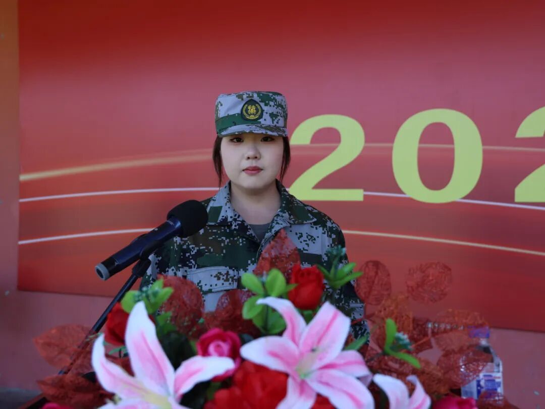 新生代表医药学院25级护理专业于意同学发言,她分享了军训中的成长感悟,表达了对大学生活的憧憬与奋斗决心。