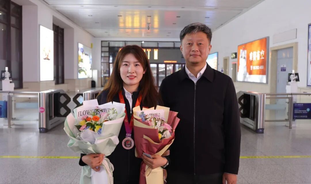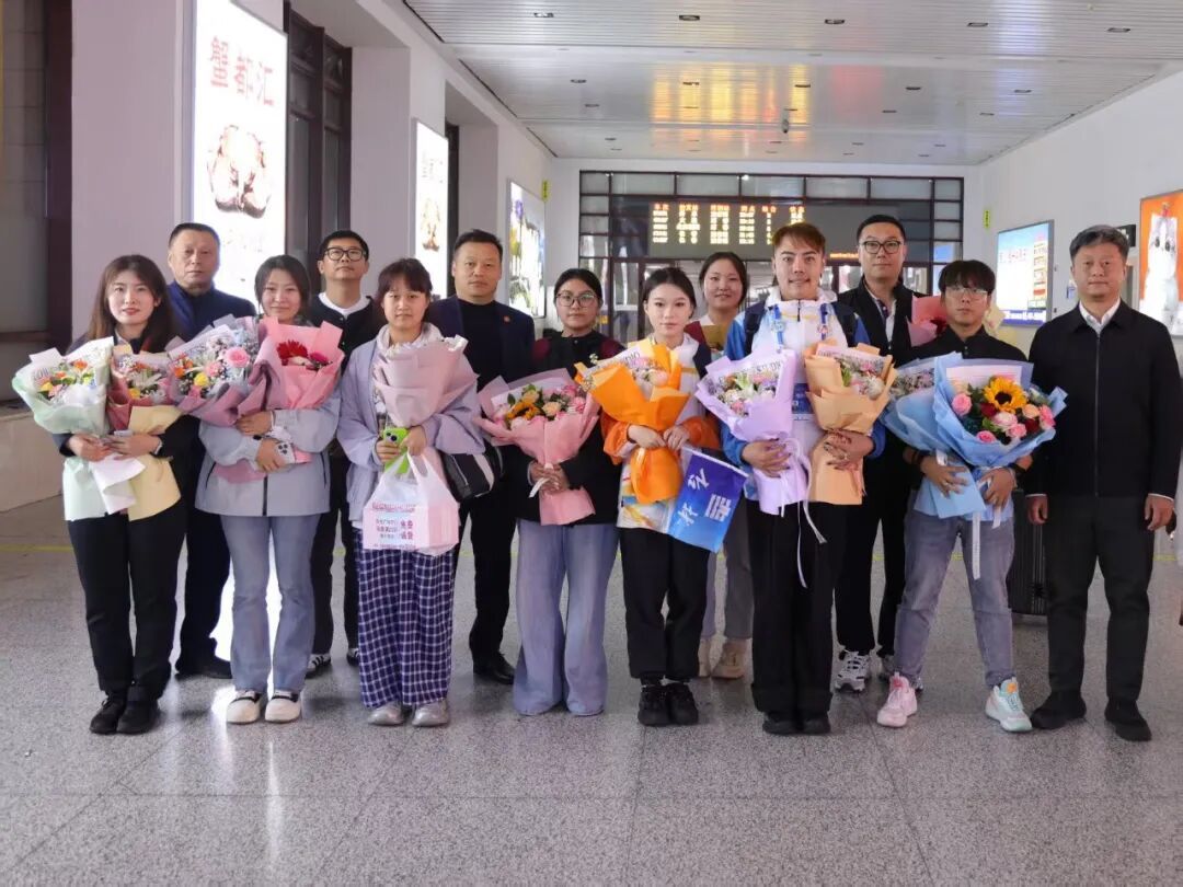 参赛师生返程当日,校党政领导班子成员专程前往延吉西站迎接。当载有团队的高铁到站,班子成员快步上前与师生一一握手问候,送上鲜花,现场师生拉起欢迎横幅,热烈氛围引得过往旅客驻足。