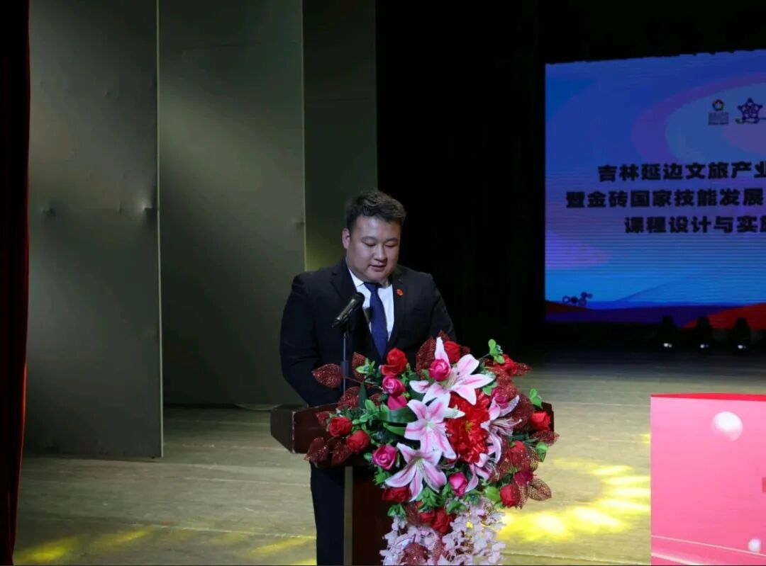 在全场热烈的掌声与激昂的音乐中,延边州文化广播电视和旅游局副局长金炫青高声宣布:“2025一带一路暨金砖国家技能发展与技术创新大赛首届国际研学旅行课程设计与实施创新赛项东北赛区正式开幕!”现场掌声雷动,参会人员共同为赛事开启送上热烈祝福。