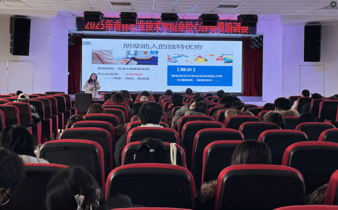 本次培训内容系统实用,围绕当代大学生心理特点、朋辈助人核心能力、高效谈话技术及自我关怀策略等多个模块展开,旨在全面提升心理委员的实际工作能力。