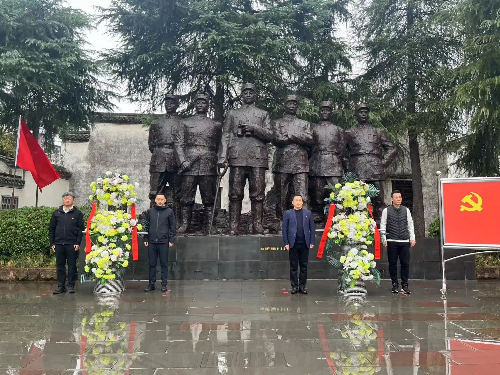 活动现场庄严肃穆,全体人员在革命先辈雕像前整齐列队,党员代表敬献花圈并整理缎带,向革命英烈致以深切缅怀;随后,全体人员低头默哀,在肃穆氛围中表达对先烈的崇敬之情;在bv伟德党委委员、组织部部长段世娇的领誓下,全体党员面向党旗重温入党誓词,铿锵誓言进一步坚定了 “忠诚于党、服务人民” 的初心使命。