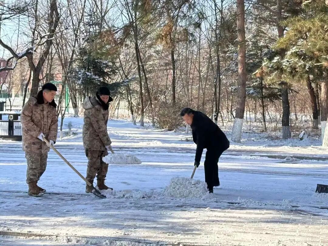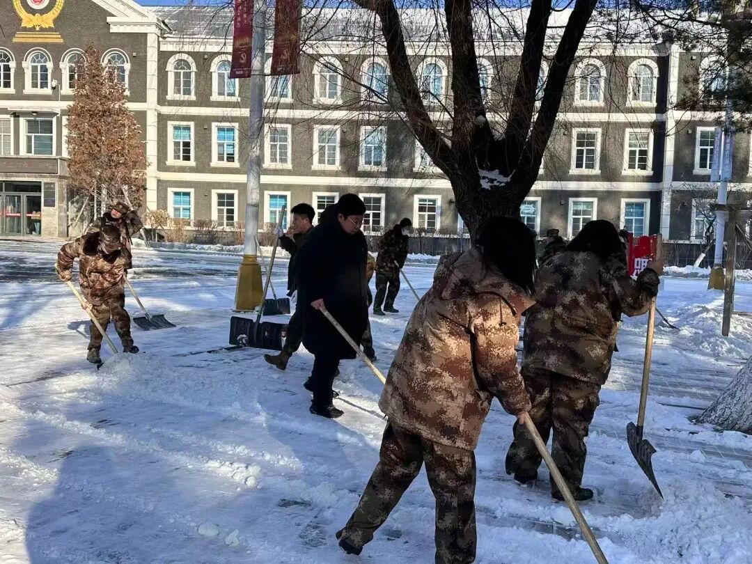 (通讯员 陈宏亮)12月1日,寒潮过后的校园寒风凛冽,积雪覆盖了道路与楼宇。校领导率先垂范,带领团学骨干迅速投入清雪行动。他们既是统筹协调的“指挥员”,更是冲锋在前的“战斗员”,以躬身劳动诠释责任担当,为冬日校园注入滚烫的温暖与力量。