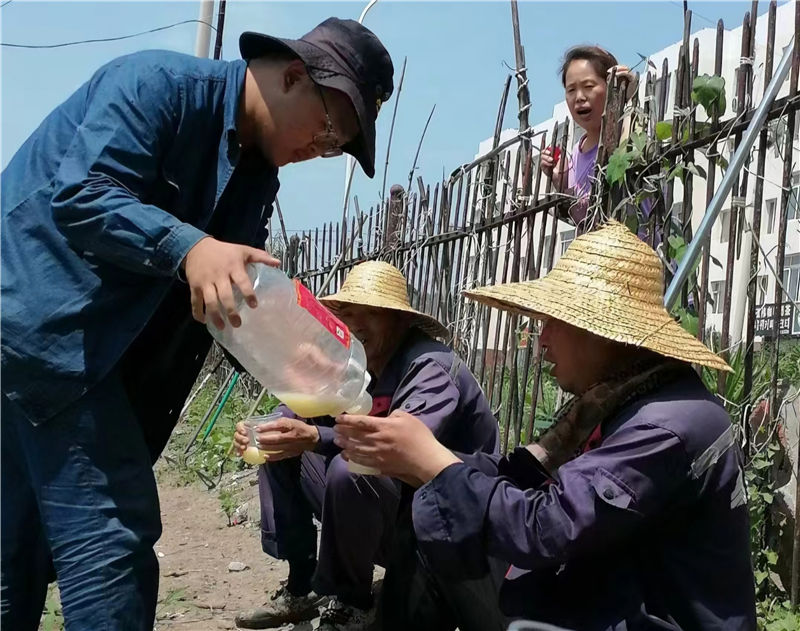 后勤处食堂经过加工、熬制、分装,一道道工序制成清凉解暑的绿豆汤,载着满怀的关心逐一送到员工手中。“有了后勤处发放的绿豆汤,热气消散了很多,感觉很舒心,感谢学校。”一位员工说到。