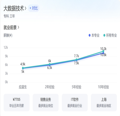本专业毕业生主要面向互联网科技公司、数据服务公司、金融机构等企业和政府机构、学术研究机构等事业单位,从事大数据实施与运维、大数据分析与可视化等技术领域工作。也可通过专升本考试进入本科院校继续深造。