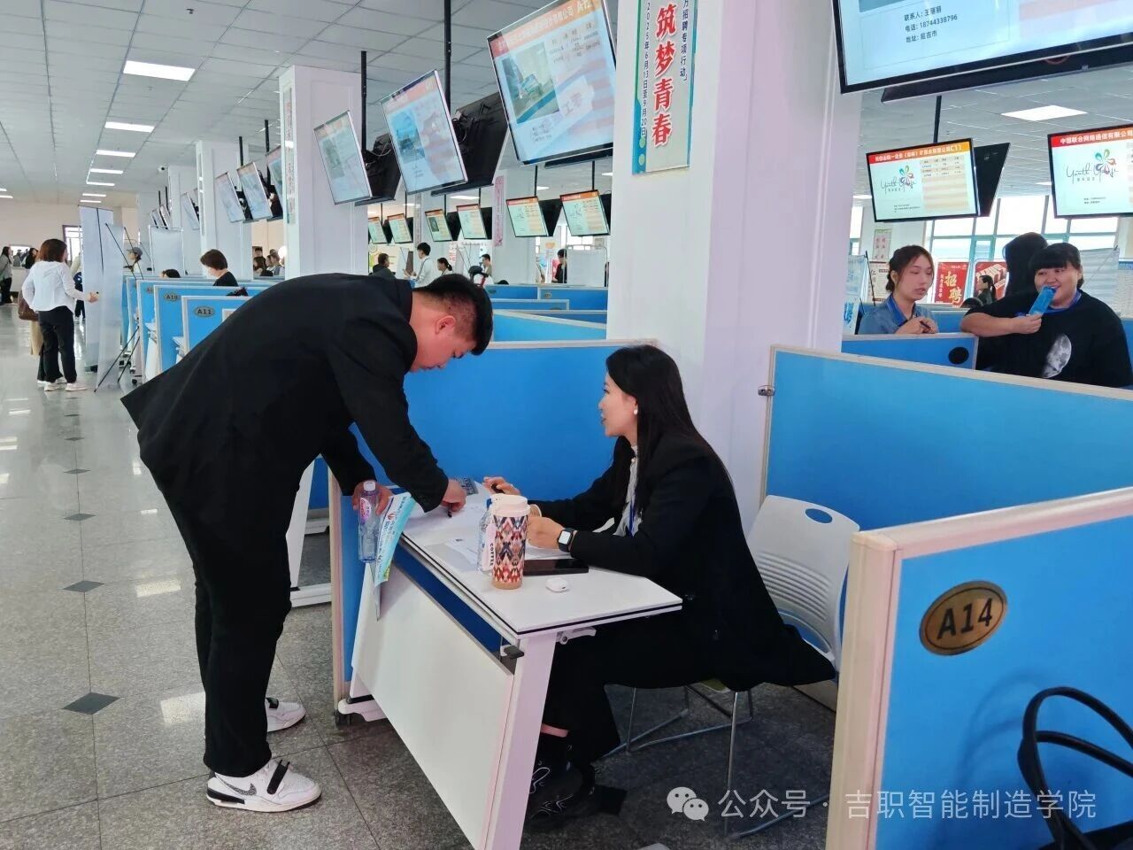 招聘会现场,延边州内多家聚焦智能制造、机械制造、电气自动化等领域的企业设立展位,通过宣传展板、资料手册发放及现场宣讲等形式,向学生详细介绍企业发展概况、岗位核心技能要求、职业晋升路径及人才培养体系。张钟老师全程陪同学生走访各展位,结合学院专业课程设置与学生的学习方向、兴趣特长,分析不同岗位对人才能力的需求重点,指导学生如何精准表达自身的专业知识储备与实践经历,鼓励大家主动与企业招聘负责人交流,深入了解行业动态。