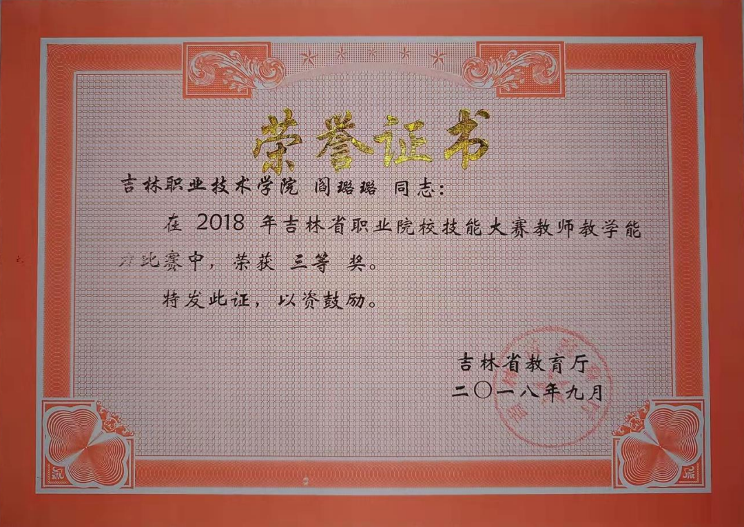 2018年吉林省职业院校技能大赛教师教学能力比赛 三等奖 获奖教师:阎璐璐