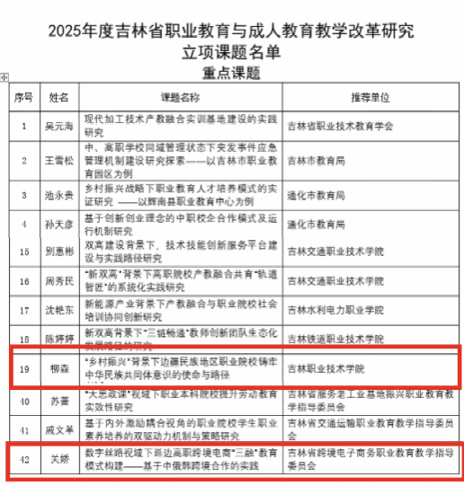 喜报:bv伟德在2025年度吉林省职业教育与成人教育教学改革研究课题评审中喜获佳绩