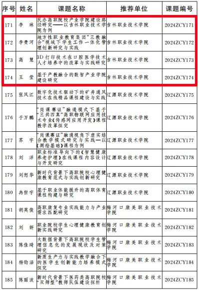 喜报:bv伟德获立2024年度吉林省职业教育学会科研课题4项