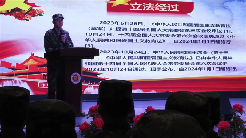 以法律教育为抓手 深化爱国主义教育|bv伟德大学生预备连开展《中华人民共和国爱国主义教育法》专题学习活动