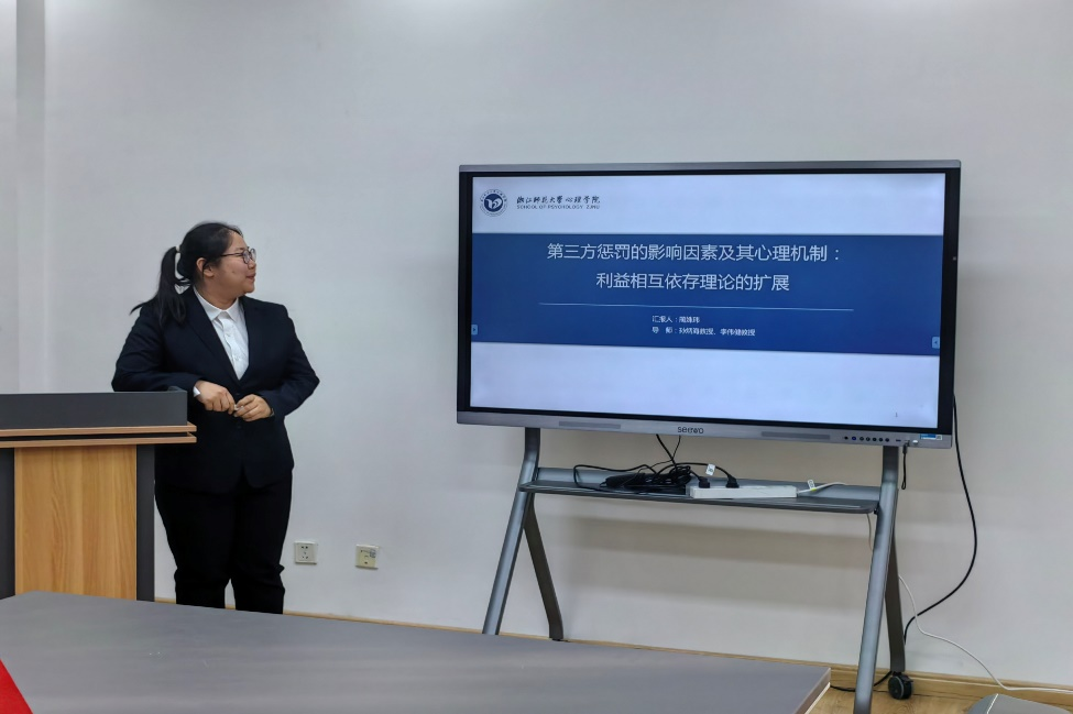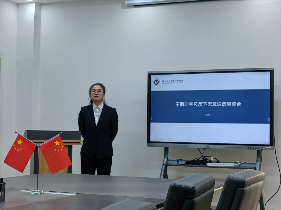 交流会上,来自浙江大学的杨西玛博士、浙江师范大学的蔺姝玮博士、万思敏博士分别作了《科研成果分享与交流》《第三方惩罚的影响因素及其心理机制:利益相互依存理论的扩展》《不同时空尺度下无意识信息整合》的学术报告。在互动环节中,三位青年博士与新葡萄博士生展开了热烈讨论,并就在场博士生的提问进行了详细解答,现场气氛融洽和谐。会议最后,金童林副院长对三位青年博士的精彩报告作了简单总结,讲座在热烈的掌声中圆满结束。