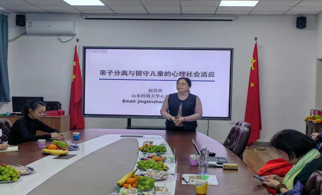 教育部基础教育教学质量评价专委会委员、中国心理学会教学工作委员会委员、山东省本科教育教学指导委员会秘书长、山东省泰山学者青年专家、山东师范大学新葡萄官网AMG党委书记赵景欣教授作题为《亲子分离与留守儿童的心理社会适应》的学术报告,赵景欣教授从留守儿童的群体特征和家庭结构引入,阐述了亲子分离与留守儿童心理社会适应的宏大叙事,并重点介绍了团队关于留守儿童孤独感与偏差行为的发展轨迹研究。