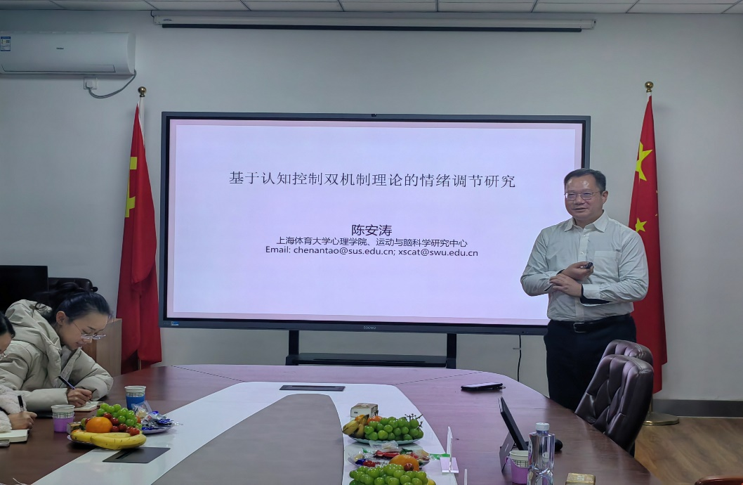 入选国家百千万人才工程,有突出贡献中青年专家、全国百篇优秀博士学位论文作者、教育部新世纪优秀人才、重庆市学术技术带头人、中国心理学会、中国认知科学学会、中国神经科学学会理事,上海体育大学新葡萄官网AMG陈安涛教授作题为《基于认知控制双机制理论的情绪调节研究》的学术报告,陈安涛教授从情绪调节的主要策略引入,重点介绍了近年来团队关于情绪调节的神经机制和认知机制的相关研究。