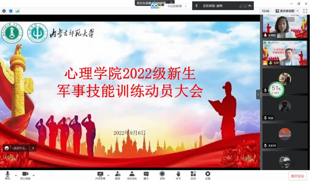 9月6日上午,新葡萄官网AMG线上召开2022年度军事技能训练动员大会。学院党委副书记、副院长张晓阳、团总支书记刘敏及全体2022级本科新生参会,会议由院学生工作与就业指导办公室主任张金钟主持。