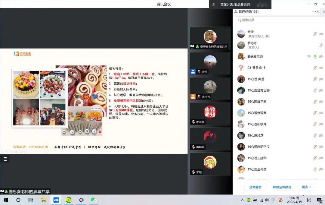 勤思教育相关负责人就公司简介、企业文化、岗位需求、薪资水平、福利保障等进行了详细介绍,并解答了同学们关心的问题。学院学生工作与就业指导办公室主任张金钟主持会议。