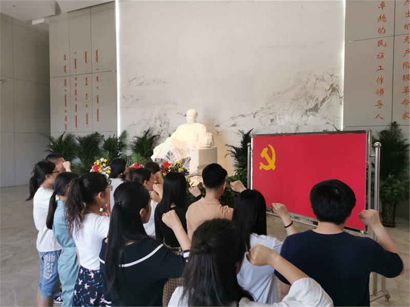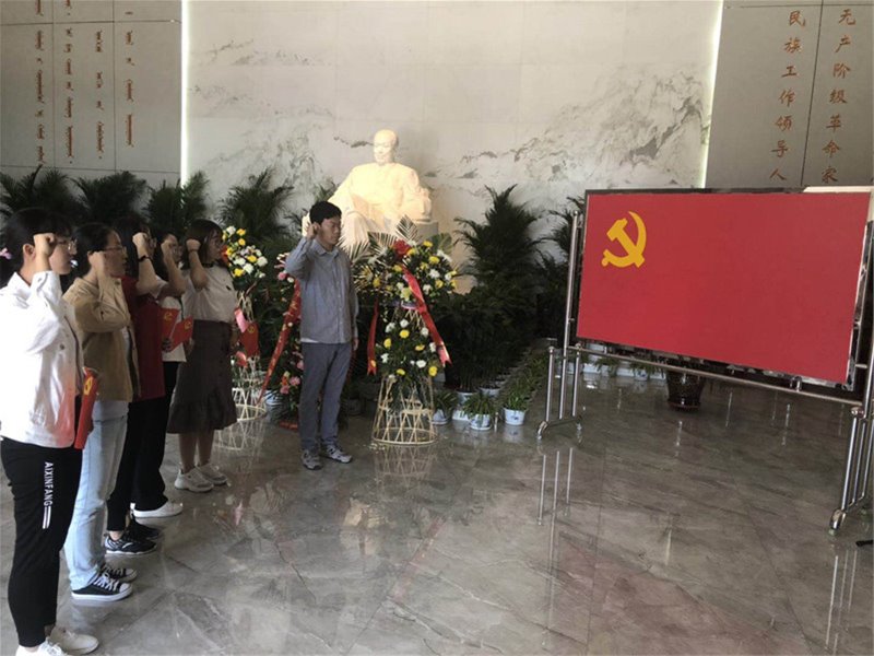 为庆祝中国共产党成立98周年、新中国成立70周年,深入学习贯彻习近平新时代中国特色社会主义思想,结合“不忘初心、牢记使命”主题教育,新葡萄官网AMG研究生党支部和本科生党支部在6月30日组织全体学生党员赴乌兰夫纪念馆开展“我是党员”集中宣誓活动。通过党员佩戴党员徽章,亮明身份,重温入党誓词活动,以隆重的仪式感,进一步增强党员身份意识,强化党员自豪感荣誉感和责任感。在庄严的重温入党誓词仪式中引导党员悟初心、筑初心,不断强化党的意识和党员意识。