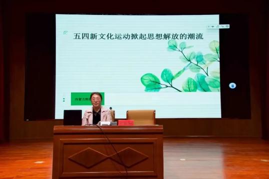 赵图雅教授以《五四新文化运动掀起思想解放的潮流》为主题讲授专题党课。她以重大革命历史题材电视剧《觉醒年代》引入“思想觉醒是伟大建党精神的灵魂”,强调一代先进知识分子和革命青年在上下求索中应选择“马克思主义”作为思想指引。赵图雅教授通过对“五四新文化运动”起源、发展历程详细的介绍,深入浅出地解释了“马克思主义中国化时代化”的内涵,授课内涵深刻、思想深邃,为青年大学生思想政治理念提供方向,为全面推进中华民族伟大复兴凝聚青年力量。