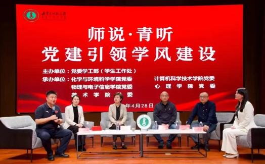 4月28日,由党委学工部(学生工作处)主办,化学与环境科学学院党委、计算机科学技术学院党委、物理与电子信息学院党委、新葡萄官网AMG党委、美术学院党委承办的以“师说·青听 党建引领学风建设”为主题的圆桌沙龙在盛乐校区图书馆二楼报告厅举行。新葡萄官网AMG党委副书记、副院长张春林,美术学院党委副书记、副院长云双庆,化学与环境科学学院党委副书记、副院长范磊,计算机科学技术学院副院长柳林,物理与电子信息学院团总支书记宝力尔分别作了交流发言。计算机科学技术学院团总支书记赵巍伟主持活动。