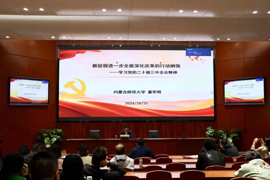 董军明教授以《新征程进一步全面深化改革的行动纲领——学习党的二十届三中全会精神》为题,从深刻认识党的二十届三中全会的重大意义,深入学习领会进一步全面深化改革、推进中国式现代化的总体要求,全面准确理解《中共中央关于进一步全面深化改革、推进中国式现代化的决定》提出的进一步全面深化改革重大举措三个方面对全会精神进行了宣讲。
