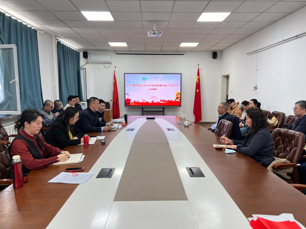 为认真贯彻落实学校2024年党的建设暨全面从严治党工作会议精神,引导全体教职工切实将思想、行动统一到校党委决策部署上来,推动党的建设、全面从严治党各项工作部署落细落地,为学校“双一流”建设营造风清气正的政治生态。2月29日下午,新葡萄官网AMG召开会议学习传达学校2024年党的建设暨全面从严治党工作会议精神。学院领导侯友、乌云特娜、张春林、金童林及全体教师参加会议。会议由学院党委书记侯友主持。
