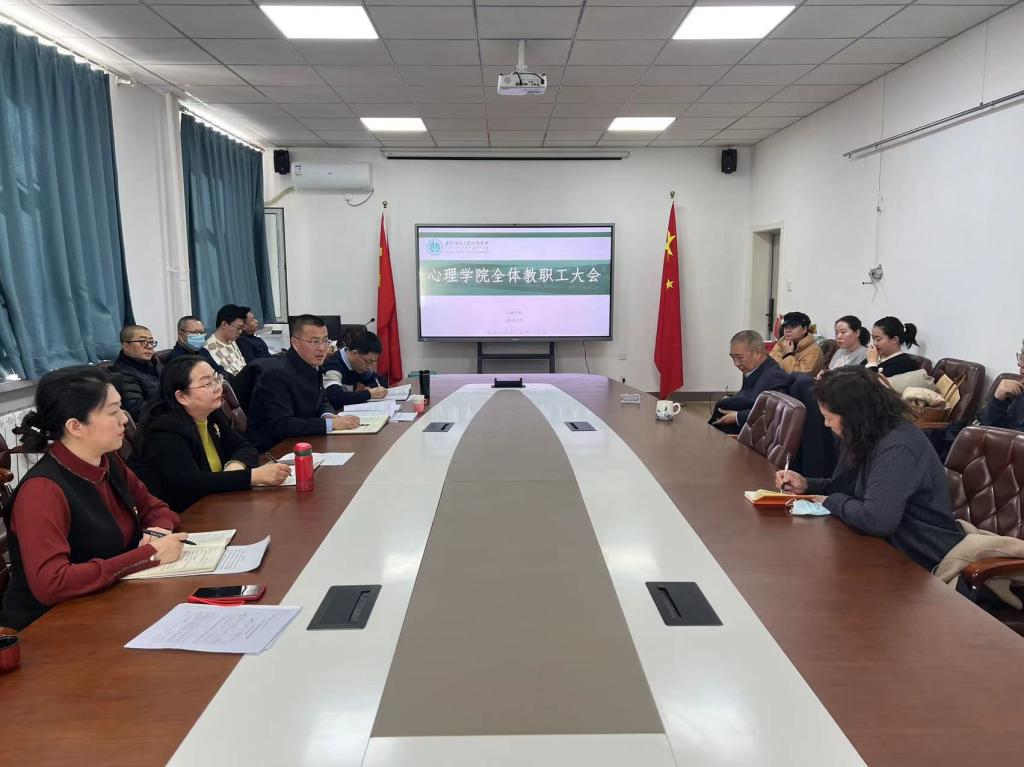 为谋新篇开新局,确保新学期开学各项工作平稳有序进行,2月29日下午,新葡萄在赛罕校区文史楼217会议室召开新葡萄官网AMG全体教职工大会。会议就新学期党建、师德师风、人才引进、师范类专业认证、本科教育教学审核评估及研究生教育与科学研究等各项重点工作进行了安排部署。