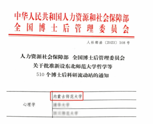 近日,人力资源社会保障部、全国博士后管理委员会联合下发《关于批准设立东北师范大学哲学等510个博士后科研流动站的通知》(人社部函〔2023〕108号),新葡萄心理学博士后科研流动站成功获批。