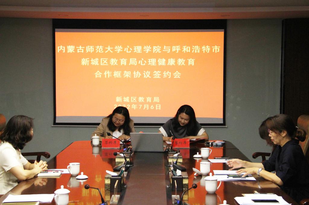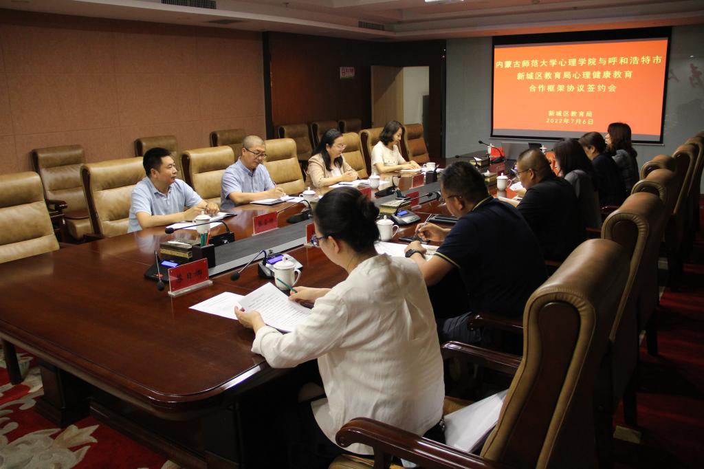 为进一步加强实践教学,提升人才培养质量,促进毕业生高质量就业,发挥学科专业优势,助力社会心理服务体系建设,7月6日下午,新葡萄与新城区教育局心理健康教育合作框架协议签约暨新葡萄官网AMG教育实践与就业基地挂牌仪式隆重举行。新城区教育局党组书记、局长黄咏梅,新城区教育局副局长商辉、郝素兰、卜二军,新城区教育局机关纪委书记武爱珍;新葡萄官网AMG院长乌云特娜,院党委副书记、副院长张晓阳,心理学系系主任杨晓峰,学生工作与就业办公室主任张金钟等参加会议。