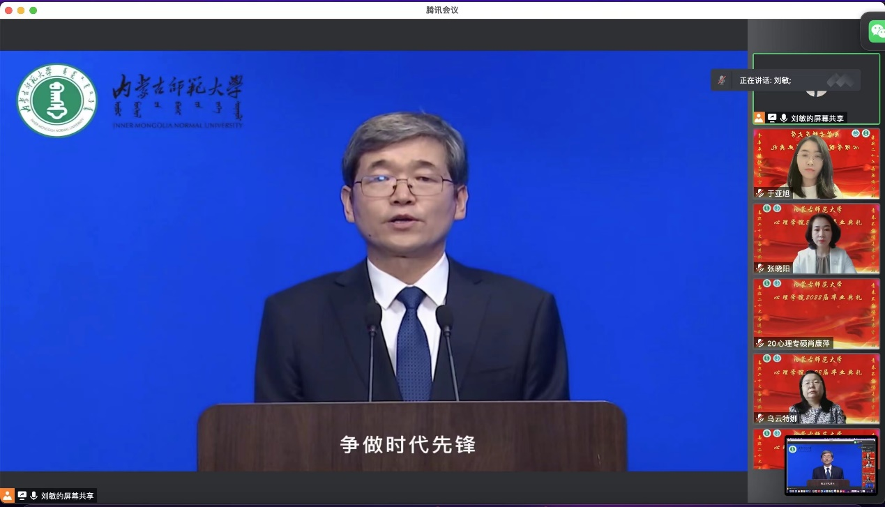 新葡萄官网AMG院长、博士生导师乌云特娜教授为全体毕业生送上深情寄语。她称赞同学们在疫情的考验之下仍然能够以理性平和的心态去处理问题,殷切嘱托同学们要脚踏实地、不忘初心,也要志存高远。牢记习近平总书记在今年建团百年讲话上对青年的殷切期望。最后乌院长教诲同学们,要常怀感恩,新葡萄官网AMG永远是我们共同的家,欢迎大家随时回家。