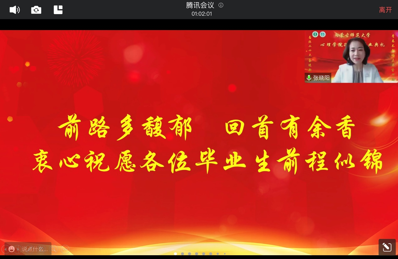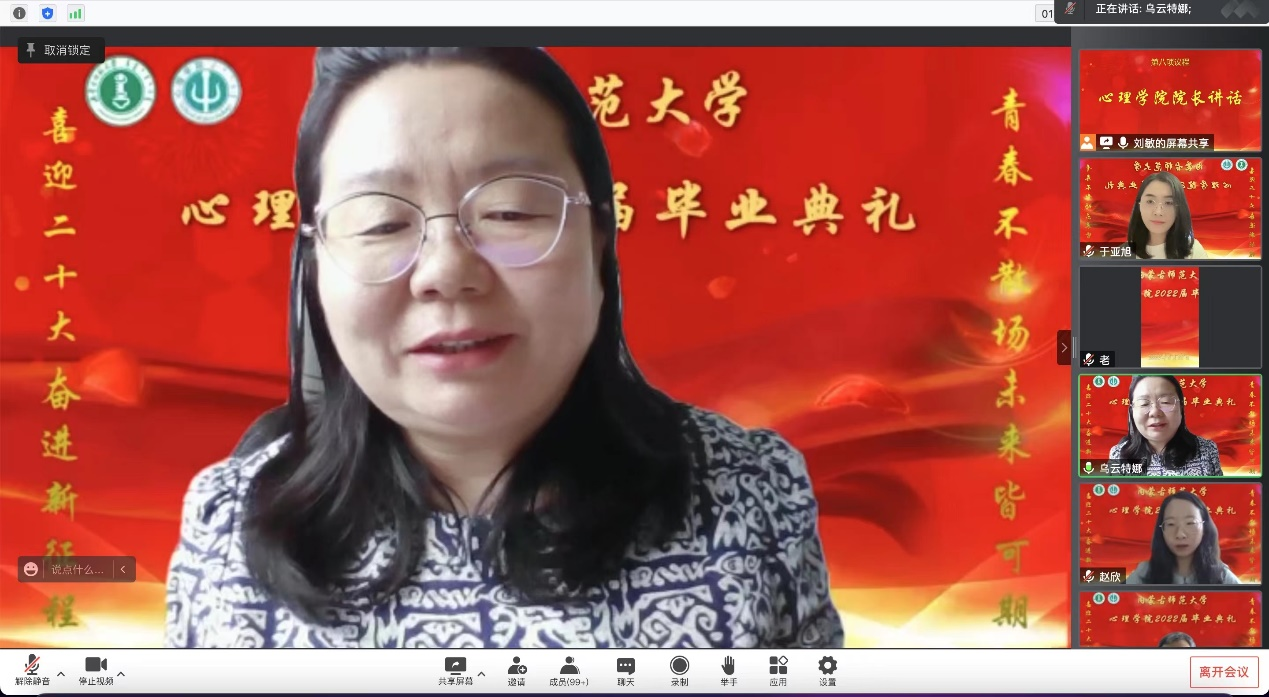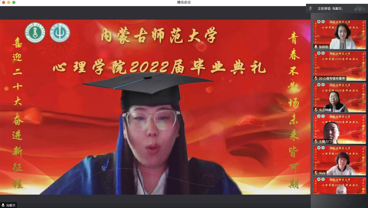 喜迎二十大,奋进新征程;青春不散场,未来皆可期。6月28日上午,新葡萄官网AMG2022届毕业典礼在云端隆重举行。新葡萄官网AMG党委书记七十三、院长乌云特娜、副院长侯友,新葡萄官网AMG全体教师及2022届毕业生和部分毕业生家长朋友们通过线上的方式齐聚一堂。典礼由学院党委副书记、副院长张晓阳主持。