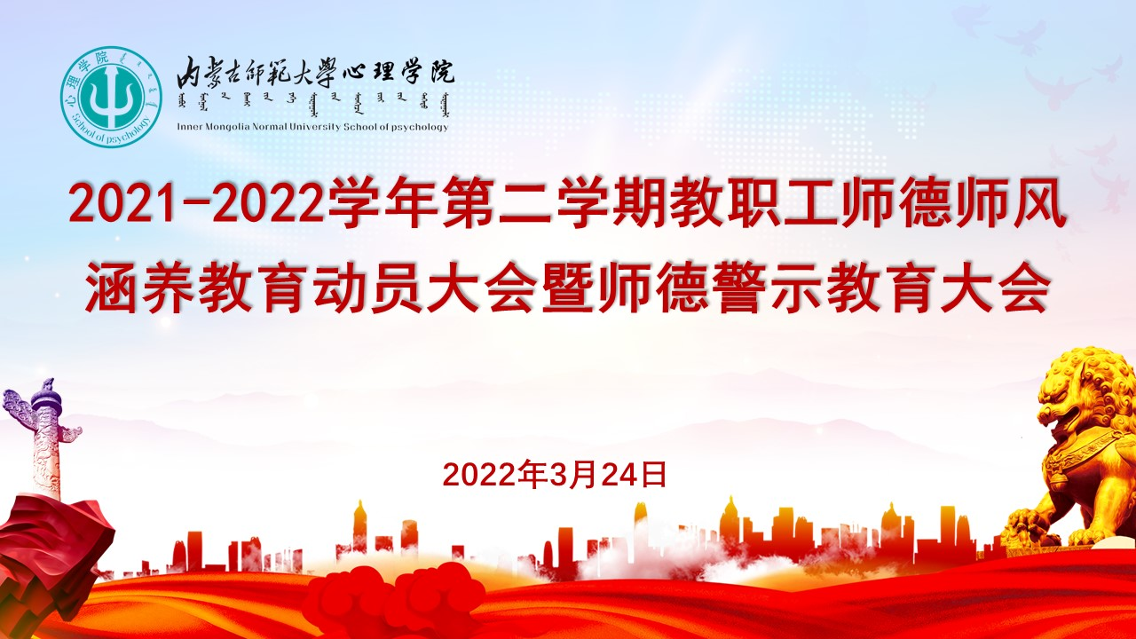 为进一步加强理论学习涵养师德师风,推动教师队伍整体提升,按照《新葡萄88805官网关于做好 2021-2022(二)学期教职工师德师风涵养教育的安排意见》要求,3月24日下午,新葡萄官网AMG召开本学期教职工师德师风涵养教育动员暨师德警示教育大会,学院党委书记七十三、院长乌云特娜、党委副书记张晓阳、副院长侯友及全体教师参会。