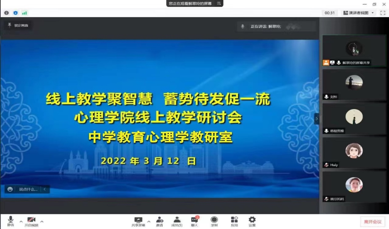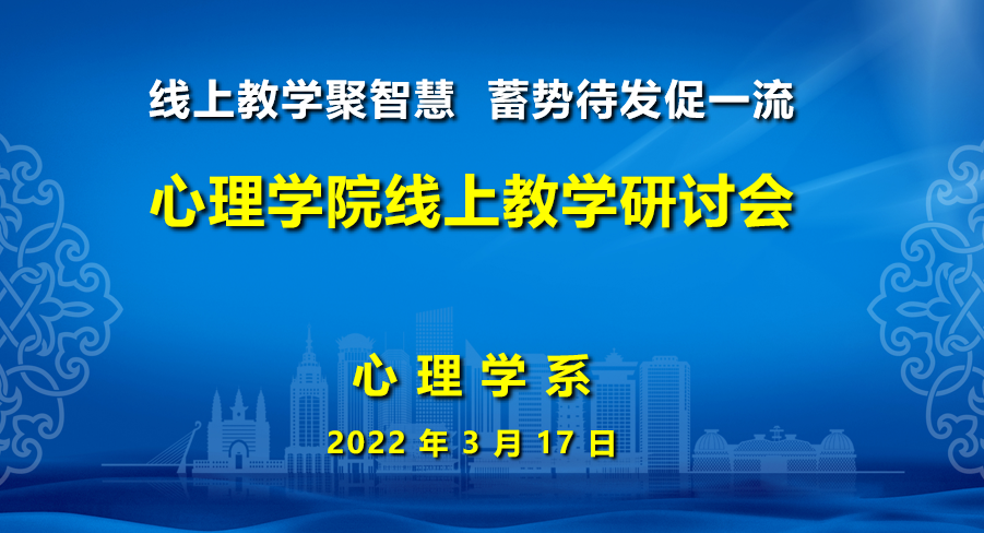 为进一步加强新葡萄线上教学组织管理工作,全力保障线上教学质量,按照学校相关要求,3月12日-17日,学院心理学系、中学教育心理学教研室和职业教育心理学教研室分别以“线上教学聚智慧,蓄势待发促一流”为主题召开了线上教学工作交流研讨会。