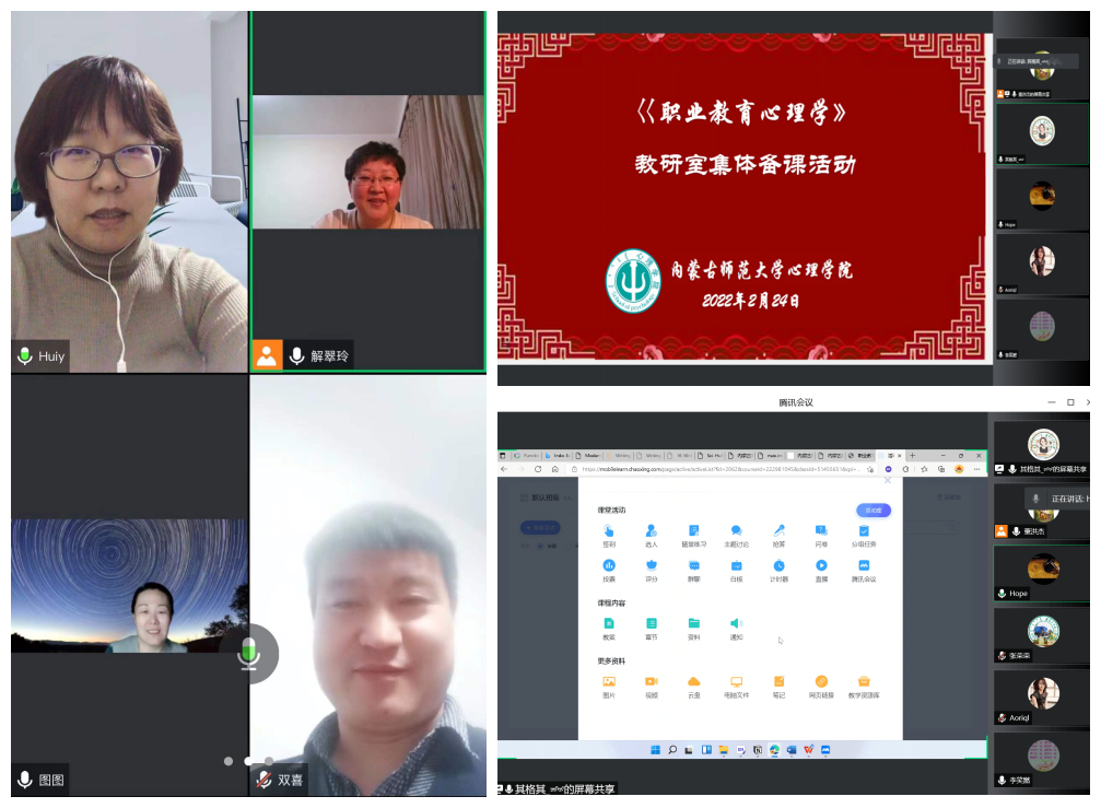 为适应新冠肺炎防控形势下的线上教学,新葡萄官网AMG各公共课教研室分别于2月22日与2月24日组织开展了《中学教育心理学》《职业教育心理学》线上集体备课活动,本学期授课教师均在线参加。