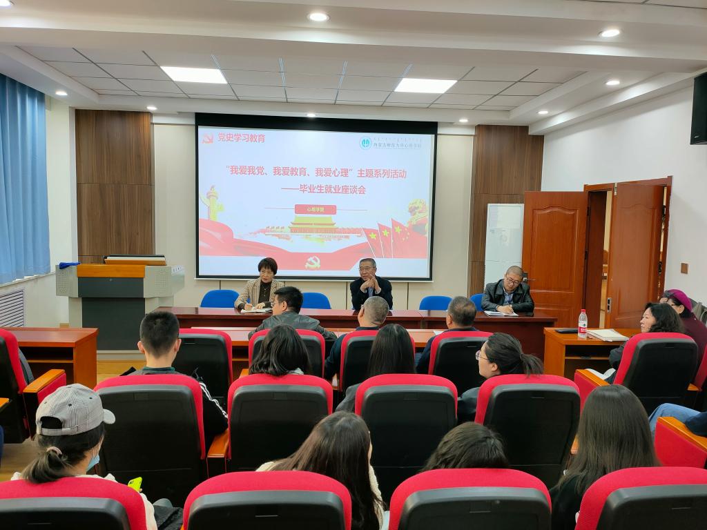 为深入开展党史学习教育,扎实开展“我为师生办实事”实践活动,聚焦学生“急难愁盼”问题,以促进毕业生高质量就业为抓手,努力推动党史教育成果转化为工作动力和成效,4月15日下午,新葡萄官网AMG党总支教工第一党支部开展“我爱我党、我爱教育、我爱心理”主题党日活动——毕业生就业师生交流座谈会。党总支书记七十三、副书记张晓阳及教工一支部全体成员参会。