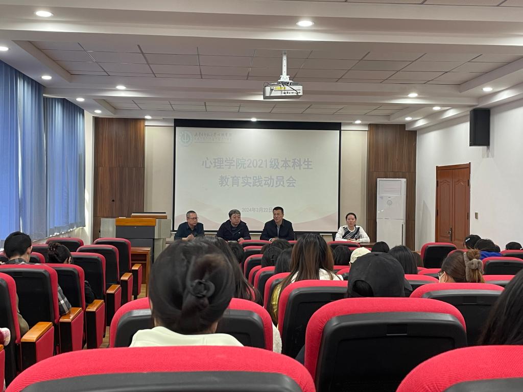 3月23日,学院召开了“2021级本科生教育实践动员大会”。会上,首先由学院党委侯友书记对教育实践工作的整体安排做了部署,并强调了教育实践对于师范生培养的重要意义。之后由实践中心主任王欣瑜老师对教育实践各环节的具体要求做了详细解读。学院教务办王朝力门和指导教师代表梁宏宇老师参加了动员大会。